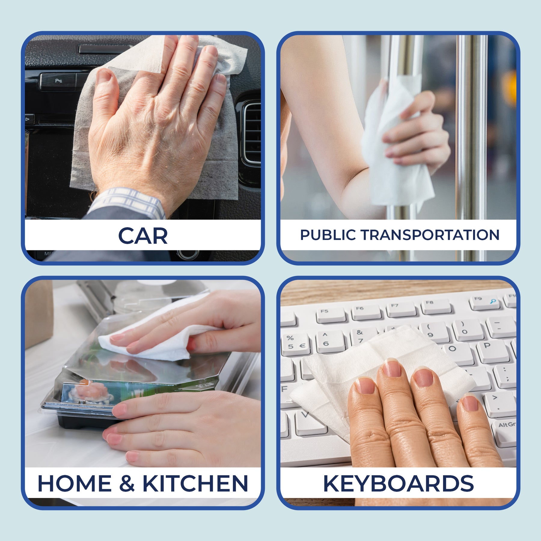 Packaged in plastic canister with resealable cover for easy use and storage. Remove lid and proceed to remove the safety seal on the canister before replacing lid on canister and using. Open lid and pull out desired number of wipes before closing the lid. Wipes are moistened and may dry out over time if not sealed properly after use; wipes are not as effective if not moistened with disinfecting solution.