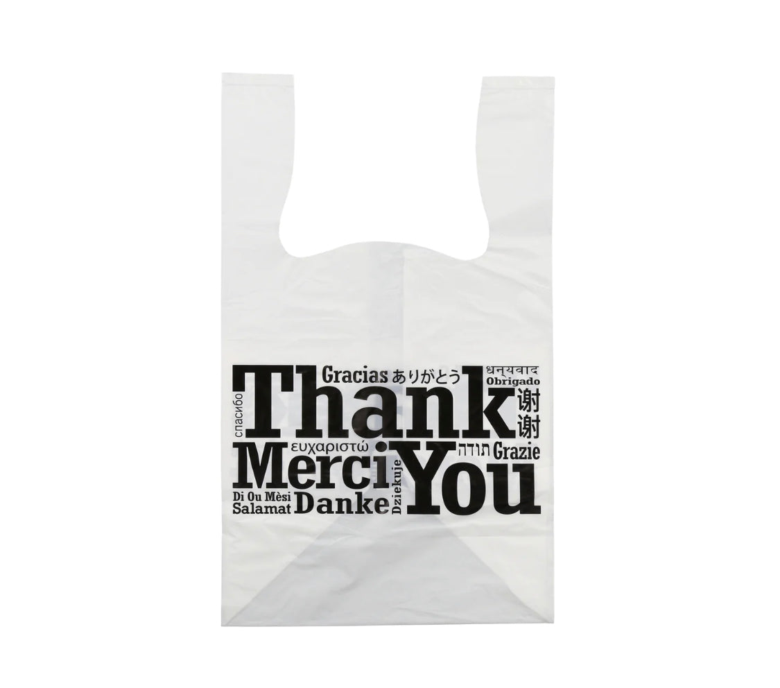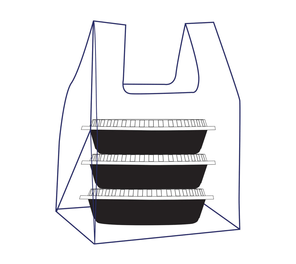 Flat Bottom Multilingual T-Shirt Bags are made from high-density polyethylene (HDPE) and have flat bottoms, making them easy to place on counters to package takeout orders with ease. our takeout bags are perfect for customers on the go. These bags feature a t-shirt handle design to make transporting food items a snap. Perfect for holding everything from warm meals to cold takeout, high-density polyethylene bags have a higher heat threshold than low-density polyethylene bags. Durable and reliable, these bags are a must-have for any takeout location or restaurant.